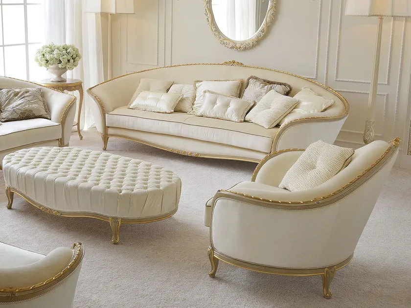L'attrait esthétique du canapé 3 places style classique réside dans ses lignes élégantes et son attention méticuleuse aux détails. Les sculptures de roses et de feuilles ne servent pas seulement d'éléments décoratifs, mais reflètent également l'artisanat pour lequel Savio Firmino est connu. L'apparence générale est sophistiquée mais invitante, en faisant un choix idéal pour ceux qui apprécient le meuble de qualité.