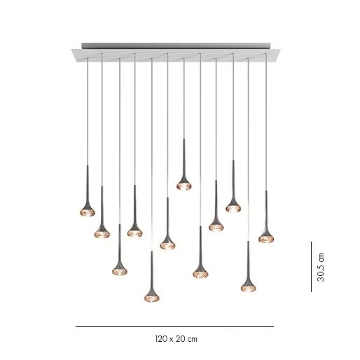 Fabriquée à partir d'aluminium et de cristal de haute qualité, cette lampe pendante est conçue pour durer tout en maintenant une esthétique élégante. La finition chrome renforce son attrait moderne, garantissant qu'elle s'intègre parfaitement dans les intérieurs contemporains. Les matériaux utilisés sont écologiques et durables, répondant aux normes de certification internationales, ce qui fait de cette lampe un choix à la fois élégant et respectueux de l'environnement.