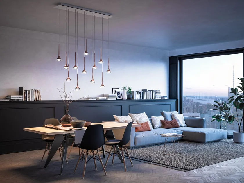 Cette lampe pendante présente des solutions technologiques de pointe, y compris un éclairage LED intégré qui offre un rendement lumineux élevé tout en étant économe en énergie. L'utilisation de matériaux avancés garantit une construction légère mais robuste, tandis que la fonctionnalité dimmable permet des expériences d'éclairage personnalisables. Ces innovations améliorent l'utilisabilité et l'attrait de la lampe.