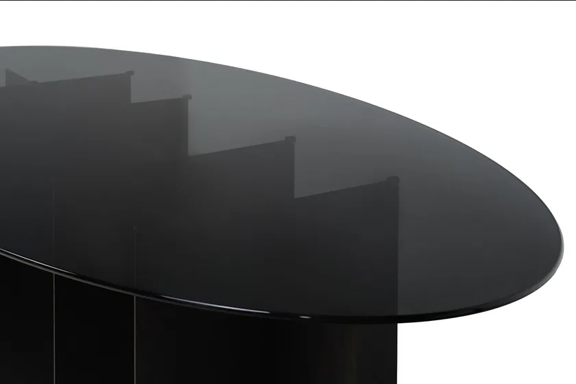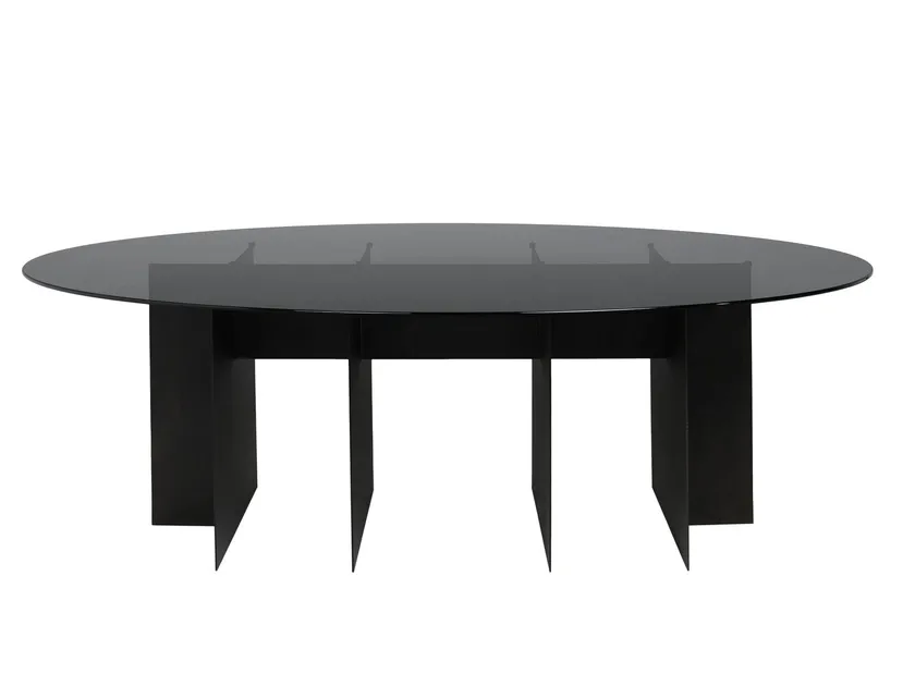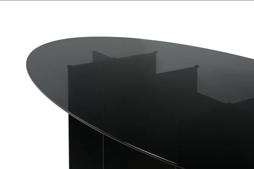 La table à manger en verre ovale ROY par CHELINI FIRENZE est un magnifique élément central pour toute salle à manger moderne. Son plateau ovale, fabriqué en verre trempé fumé de 12 mm d'épaisseur, met en valeur le design complexe des feuilles de bronze mat entrelacées qui forment la structure robuste de la table. Cette table n'est pas seulement fonctionnelle ; c'est une pièce maîtresse qui améliore l'esthétique des espaces de restauration contemporains, la rendant parfaite pour les dîners intimes et les grandes réceptions.