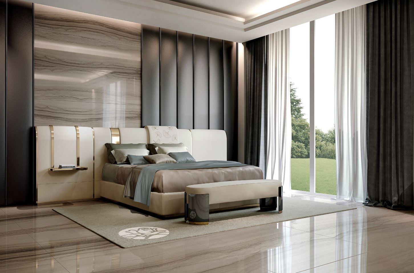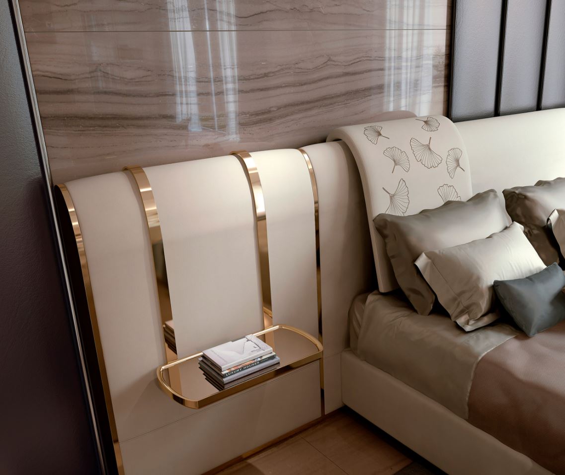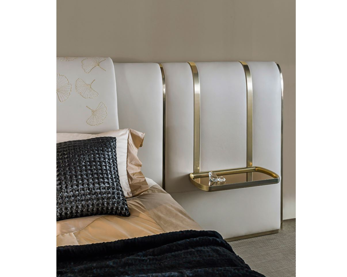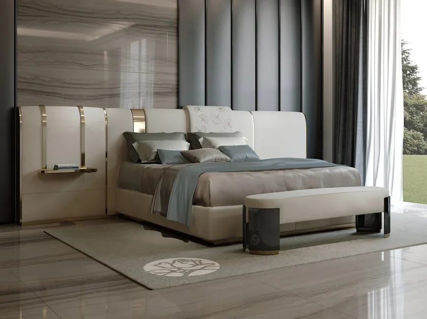 Le lit double GINKO présente une tête de lit magnifiquement façonnée avec des détails exquis qui attirent l'attention. La broderie soigneusement réalisée et les lignes épurées du design contribuent à son élégance globale. L'attention portée aux détails, de la couture sur le cuir au choix des matériaux, reflète un engagement envers la qualité et l'attrait esthétique.