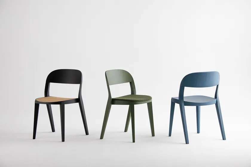 Chaise empilable en bois et paille de Vienne Minima 949 C Potocco 949/C