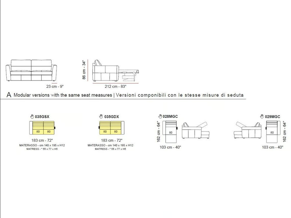 Le canapé-lit Amalfi est disponible en différentes tailles, garantissant un ajustement parfait pour votre espace. Les options vont des configurations compactes idéales pour les petites pièces aux configurations plus grandes pour des espaces plus spacieux. Les dimensions sont soigneusement considérées pour répondre aux normes de confort modernes tout en offrant un espace suffisant pour s'asseoir et dormir.