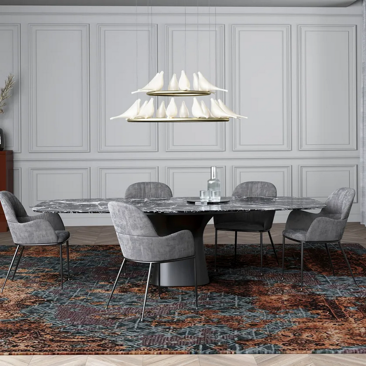 La lampe suspendue est conçue avec une technologie d'éclairage moderne, garantissant efficacité énergétique et longévité. Chaque ampoule est facilement remplaçable, et le luminaire est compatible avec divers types d'ampoules, vous permettant de personnaliser la luminosité et l'ambiance selon vos préférences. La lampe est également conçue pour la stabilité et la sécurité, avec des options de montage sécurisées qui garantissent qu'elle reste solidement en place.
