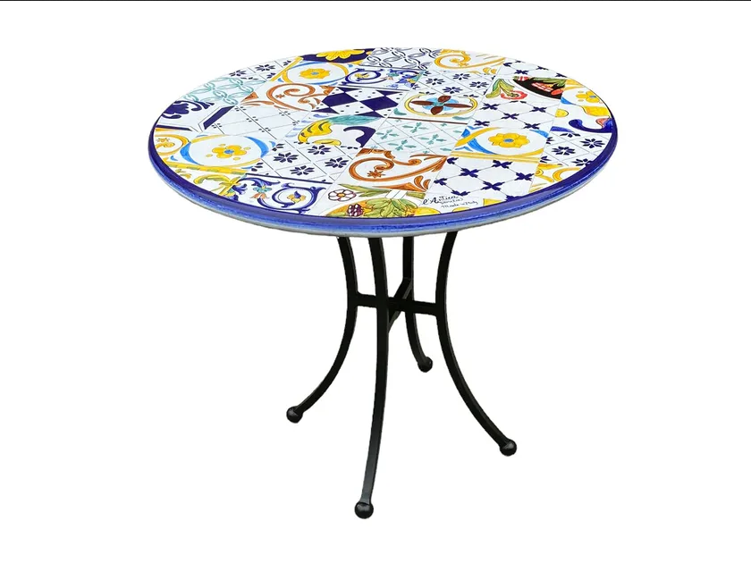 Table de jardin en pierre volcanique patchwork L_Antica Deruta TLC/PATCH