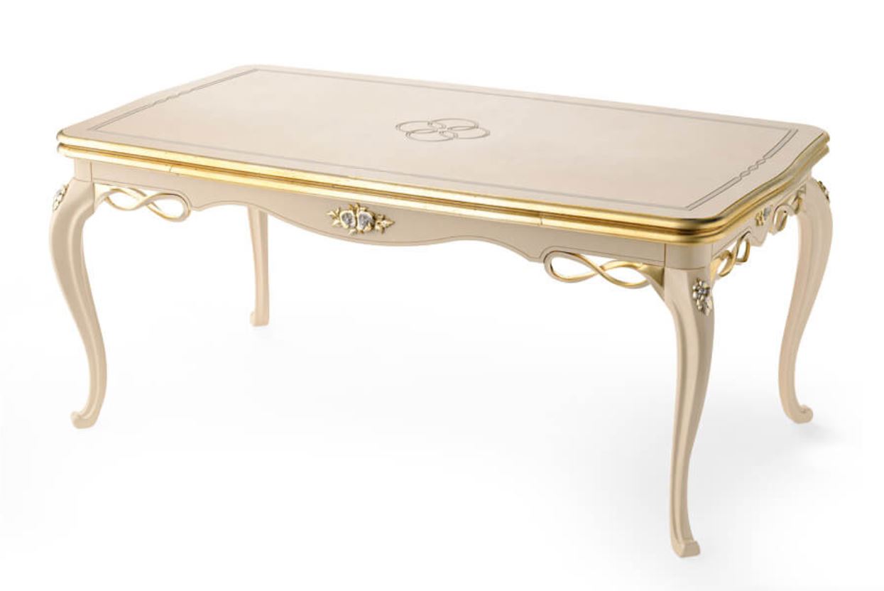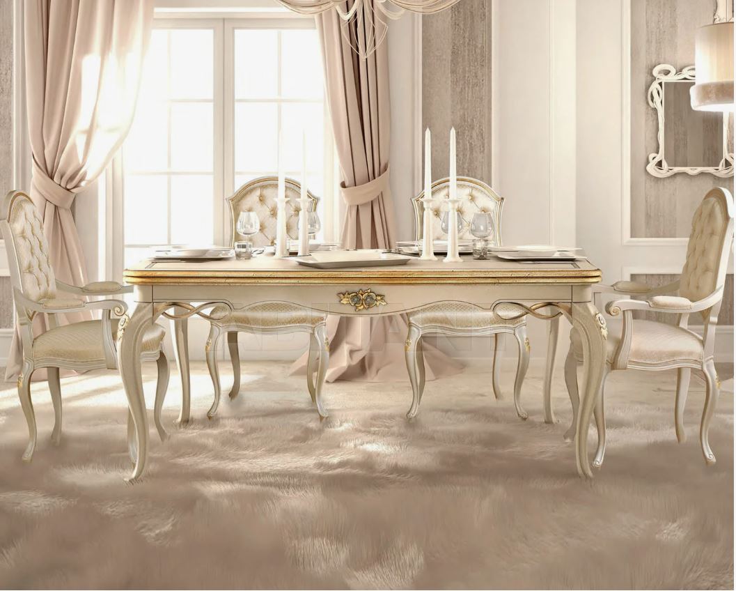 Banquette, présentée dans un style classique par l'usine italienne SIGNORINI COCO&C, collection Forever. Fait de bois massif, décoré avec des éléments sculptés. Le siège est tapissé de tissu, cousu de capitone.