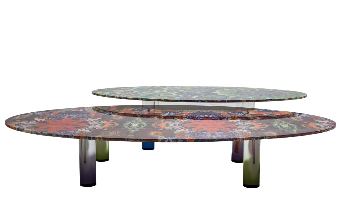 Développement de l'usine SIGNORINI COCO. Table basse EDEN collection DAYTONA WONDERLAND Dessus en contreplaqué plaqué MDF.Pieds en acier thermolaqué. Le plateau est laqué ou décoré d'un motif.