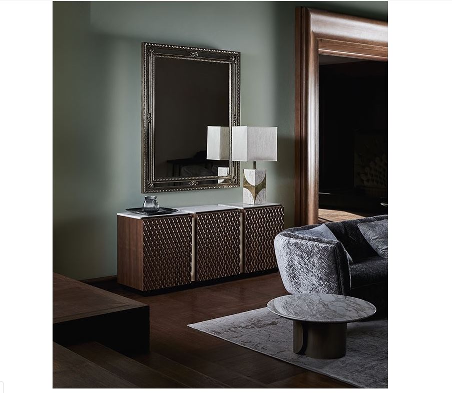 Le buffet en bois avec portes - Victor par OPERA CONTEMPORARY est une pièce de mobilier époustouflante conçue pour les cuisines modernes. Fabriqué en noyer canaletto massif, ce buffet présente un motif en diamant unique sculpté en relief, ajoutant une touche d'élégance à n'importe quel espace. Le plateau en marbre Calacatta luxueux rehausse son attrait esthétique, en faisant non seulement un objet fonctionnel, mais aussi une pièce maîtresse. Parfait pour ranger des accessoires de cuisine, il allie style et praticité, offrant un espace de rangement ample tout en élevant votre décor intérieur.