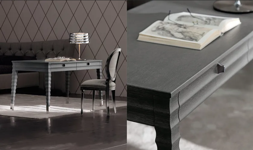 Le bureau d'écriture ELETTRA est conçu en tenant compte de la fonctionnalité. Il présente une construction robuste qui assure la stabilité pendant l'utilisation. Les tiroirs du bureau sont équipés de mécanismes de haute qualité pour une ouverture et une fermeture fluides, améliorant ainsi l'expérience utilisateur. Chaque composant est méticuleusement conçu pour offrir un maximum de confort et de commodité pour les tâches quotidiennes.