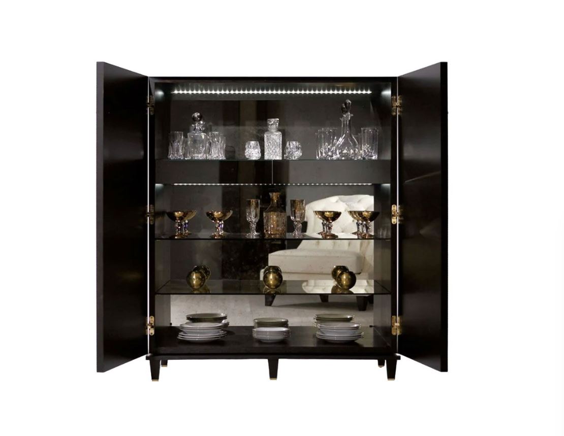 Des technologies innovantes sont intégrées dans le design, y compris des options d'éclairage intégré qui mettent en valeur vos objets précieux et ajoutent une lueur chaleureuse à votre espace. Les matériaux du buffet sont traités pour offrir des propriétés antibactériennes et résistantes à la poussière, garantissant que votre meuble reste propre et hygiénique avec un minimum d'entretien.
