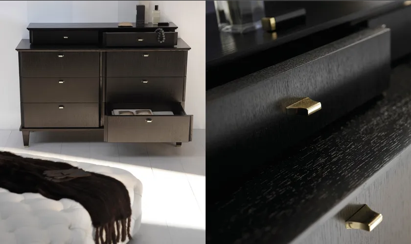 Les innovations technologiques dans la commode DESIRÉ incluent des mécanismes de tiroirs avancés qui garantissent un fonctionnement fluide et une longévité. L'utilisation de pièces de haute qualité provenant de fabricants de premier plan garantit une expérience conviviale, permettant un entretien facile et une fonctionnalité durable.